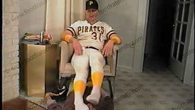 In his baseball uniform, he has slave serve cleats, lick them & service them. White, sweaty socks with stirrups, very sweaty are shoved in the slave’s face as he is forced to sniff this jock’s sox. Then bare feet action, as slave has to suck toes, lick & kiss the thick, strong, young exec’s feet. He gives constant verbal & dominating orders & commands! Much foot licking, nose between toes & humiliati....... (click video link to see full description)