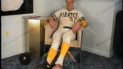 Back for more as he watches as his servant is at his baseball socks. He teases him, laughs & watches as he sticks his college jock feet in the face. He is in baseball uniform, stirrups & white sheer socks. He gives the orders of how it will be. He watches the attention at his feet. He ordered his servant to buy him some hot, straight videos for him to watch while his socked feet & bare feet are serviced. Tw....... (click video link to see full description)