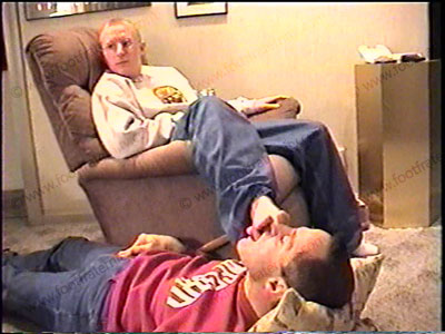 In shorts, & T-shirt, white sweat socks & sneakers, as he relaxes in Lazy boy lounger with his foot slave pinned at his feet for worship, service of his sweaty socks & bare feet, Wayne gets a fan letter from a woman who is into his feet. He loves this worship while a guy is there in person, serving at his feet. He tells of his sensual fantasies while having foot worship. Sock sniffing, bare feet licked, kis.......