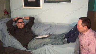 In jeans, sweater, sneakers and blue sweaty Under Armor socks, Roberto brings his brother into a scene for the first time. You hear his brother responding in this one as he watches in amazement at the power they can have for being straight and having foot slaves for pay for the honor; Roberto demonstrates it all - socked feet for worship, then bare foot service, adoration & service; he is lying on the sofa .......